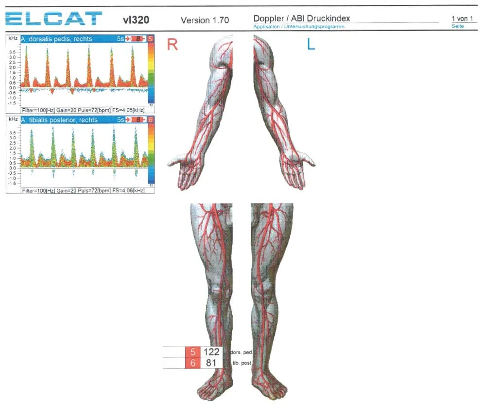Diese einfache, schmerzfreie und beliebig wiederholbare Methode eignet sich auch hervorragend zur Verlaufsbeobachtung und zur Erfolgsbeurteilung nach Gefäßinterventionen oder Gefäßkonstruktionen.